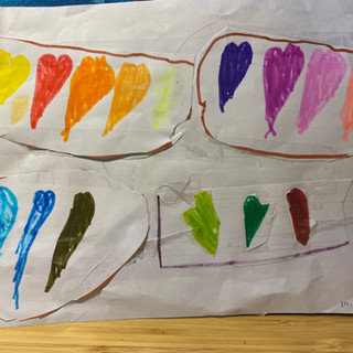 一開始以為妹妹只是把色筆裡面排列相似的顏色輪流拿出來畫,
